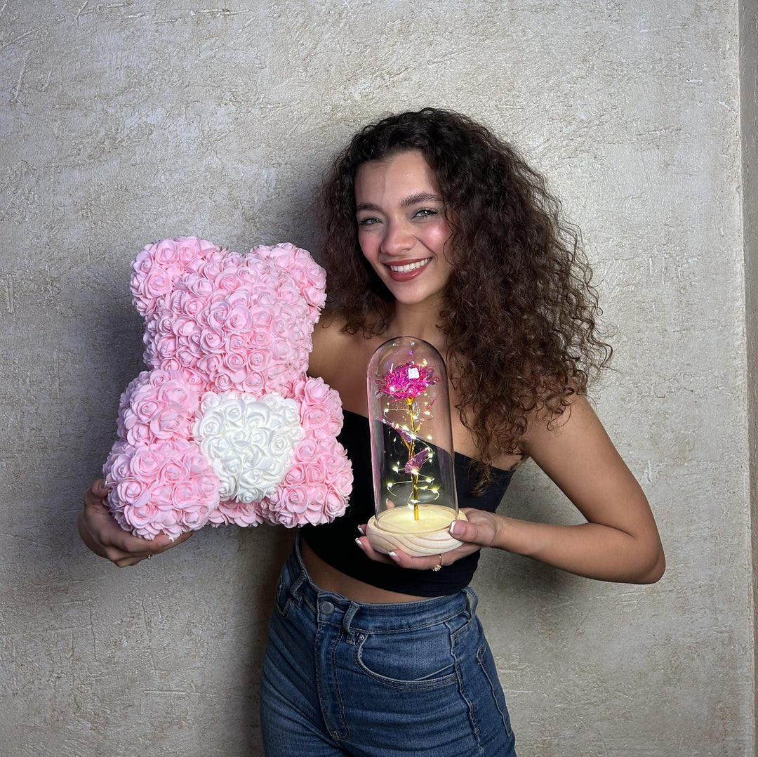 Luxurious Jewelry Box With Eternal Rose + Magnetic Four Heart Necklace